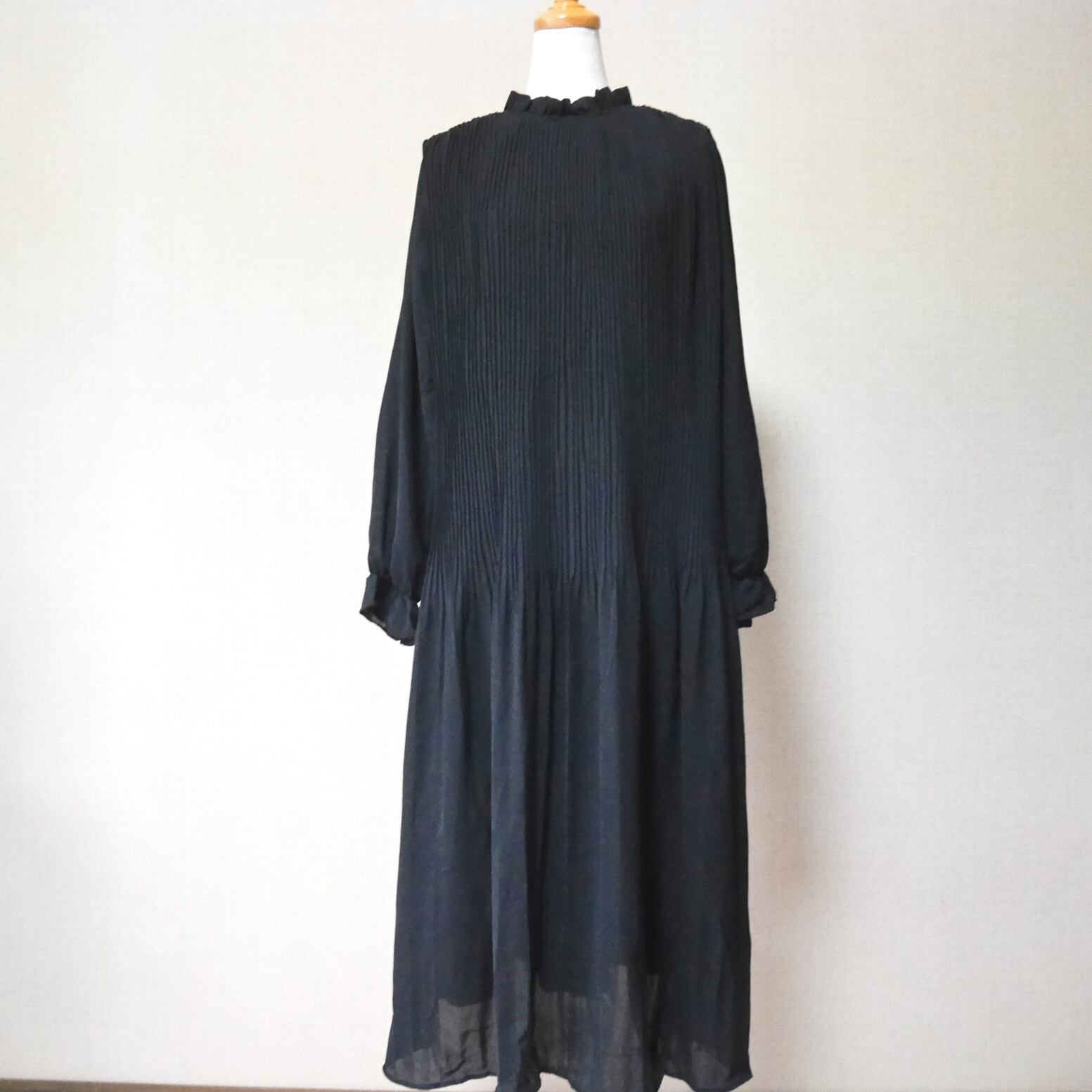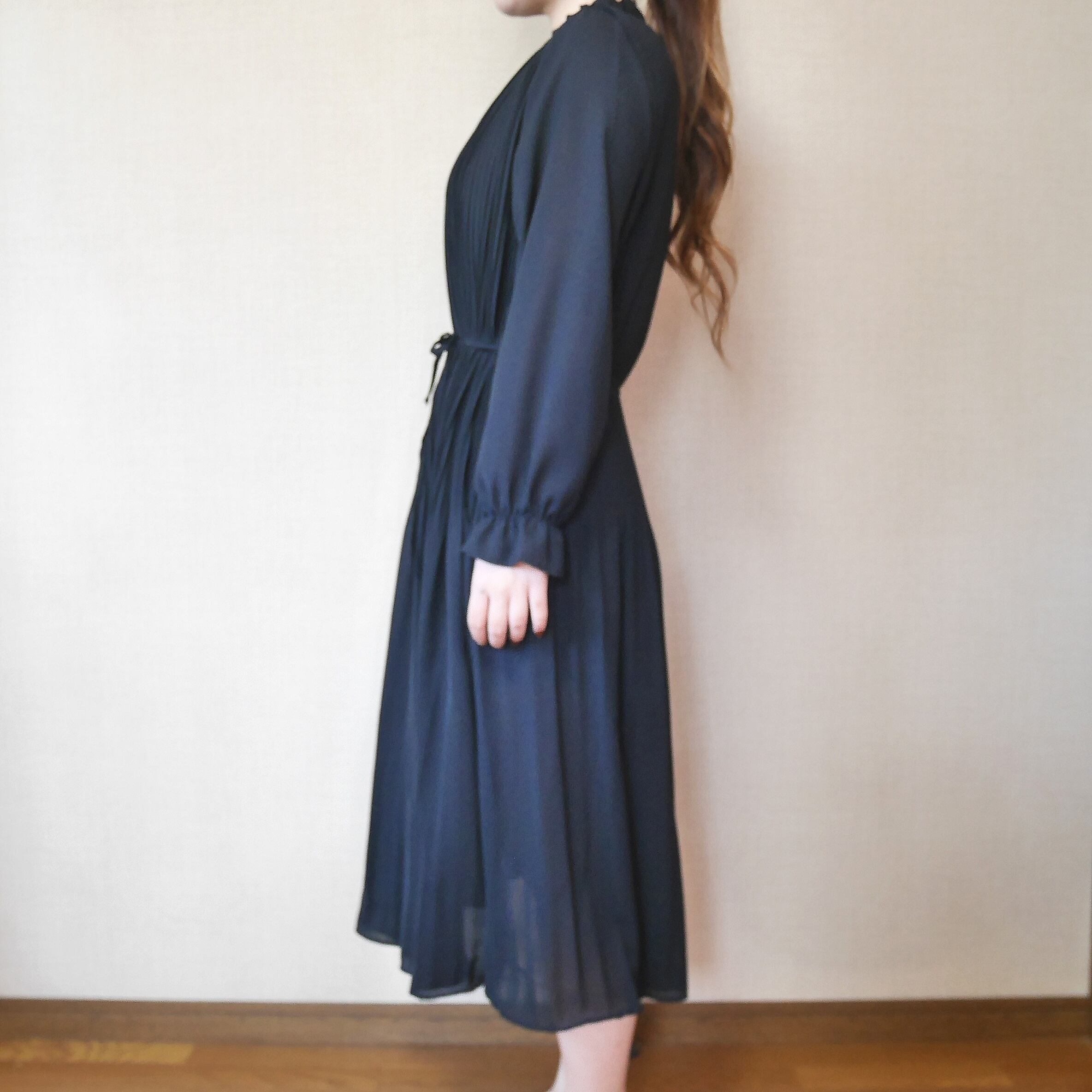 エレガンスとフリルネックでちょっぴり甘さが共存する2wayプリーツワンピース。さりげなく上品なフリルデザインが首元を華やかに演出し、女性らしい魅力を引き出します。細めのリボン紐がセットになっているので、気分に合わせてウエストを絞ったり、ふんわりゆったり着て頂くことができます。細かいプリーツ加工が織り成すシルエットも魅力的です。