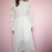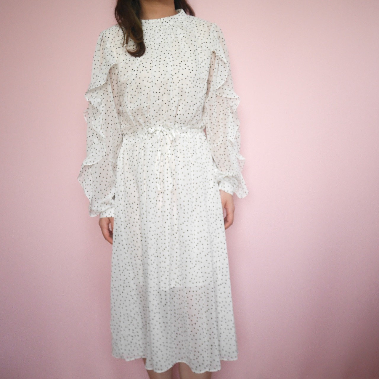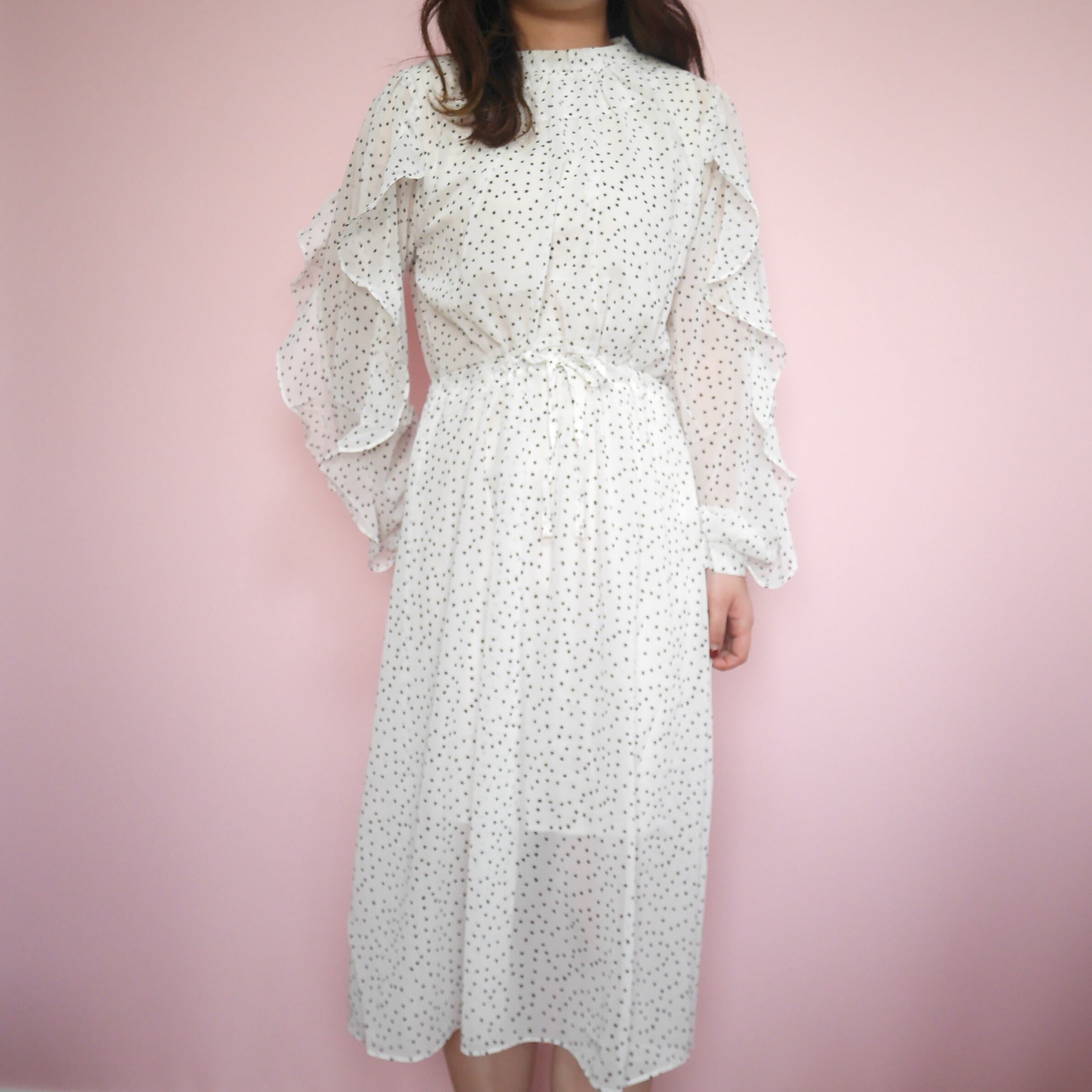 袖に施されたフリルが上品でかわいいロングワンピースです。