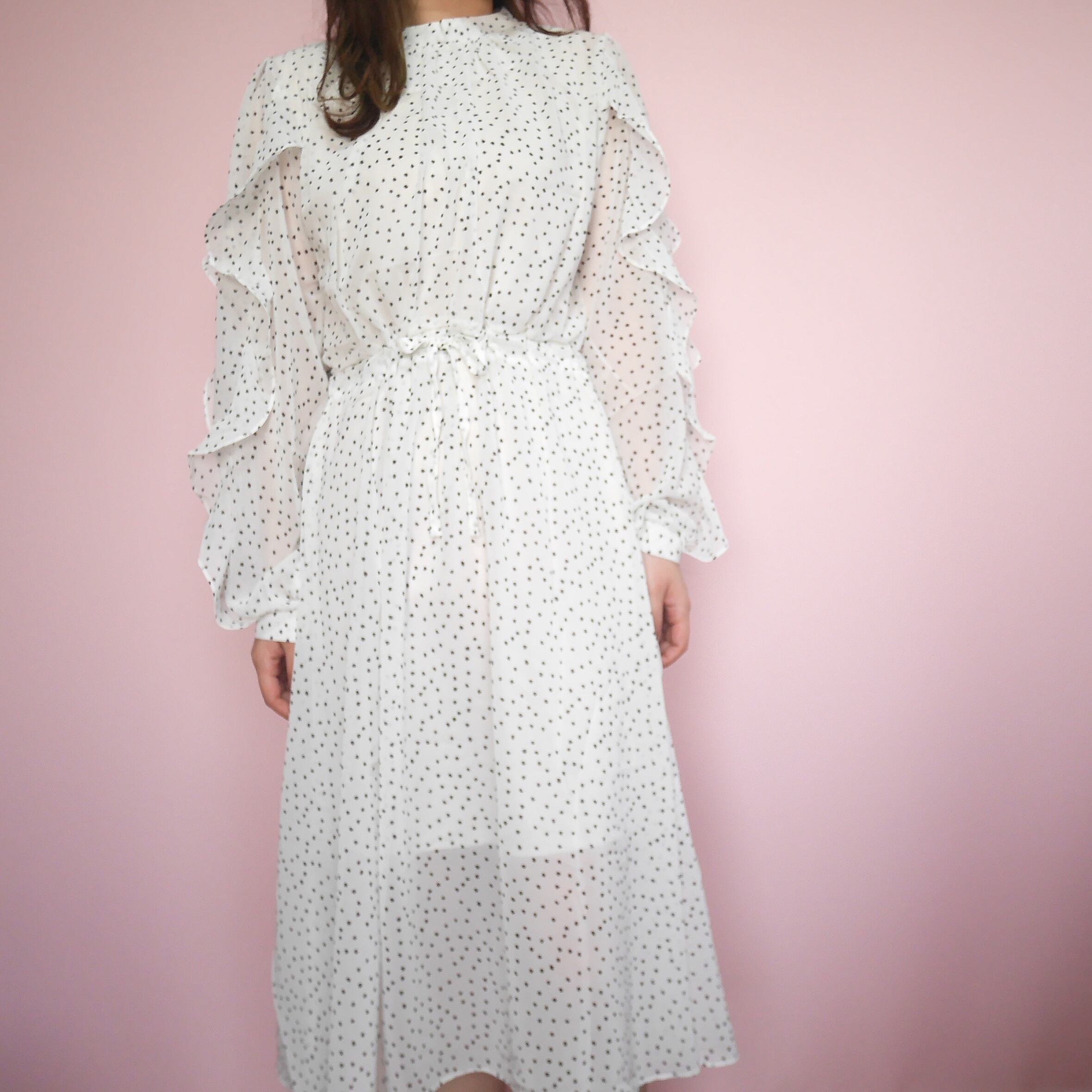 裏地は一部のみなので、袖や足元の程よい透け感もとってもかわいいです◎